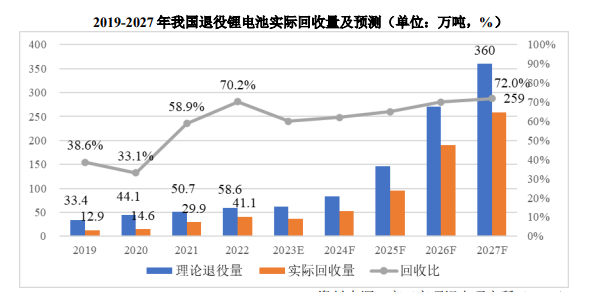 锂电池回收行业市场分析:2027年锂电池实际回收量有望达到250万吨以上