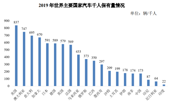 虽然我国已经连续多年位居全球汽车产销量第一大国,但我国人均汽车保有量相比于西方发达国家仍处于较低的水平。根据数据,2019年美国、澳大利亚、意大利、加拿大、日本等发达国家的汽车千人保有量分别为837辆、747辆、695辆、670辆和591辆,我国汽车保有量为173辆,不仅低于美国、澳大利亚等发达国家,甚至低于马来西亚、巴西等发展中国家。未来随着我国经济水平的不断发展,人均汽车保有量水平将随之提升,因此未来我国汽车行业仍具有广阔的发展空间。