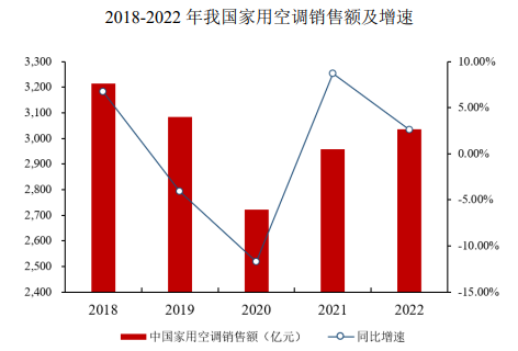 同时,我国家用空调的潜在替换需求仍在不断增长,存量更新市场将是当下和未来长时间内空调市场需求的主要增长源动力。根据中国家用电器协会发布的系列标准,空调器的安全使用年限为10年。同时,现代消费者对于空调的期望早已不仅仅是满足温度、湿度的调节,节能高效空调、新风空调、全域无风感空调、洗空气空调、自清洁空调、睡眠空调等产品正越发受到青睐,能效水平、舒适送风、健康功能、新风、智能控制成为旧机换新时消费者会侧重考虑的功能特征。与之对应的,更多的空调企业也正通过技术创新针对性地推出相应功能甚至复合功能的产品,以满足消费者日渐个性化、品质化的消费理念。新产品的推出满足了消费者更多的需求,加速了空调的替换更新。