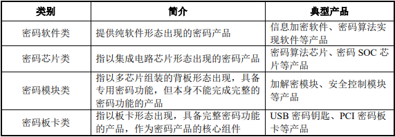 商用密码产品目前按形态划分为6类:密码软件、密码芯片、密码模块、密码板卡、密码整机、密码系统。具体情况如下: