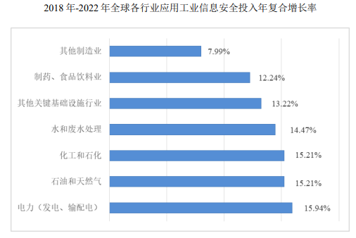 根据预测,电力(发电、输配电)、石油和天然气的工业信息安全市场处于领先地位,作为关键基础设施的水和废水处理行业,在工业信息安全领域的投入明显增加,随着用户意识的提升,工业信息安全在其他关键基础设施、制药、食品饮料业及其他制造业的应用将出现明显增长,具体预测情况如下: