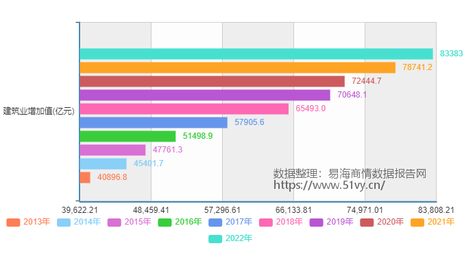 图表解释:2013-2022年中国建筑业占国内生产总值比重数据